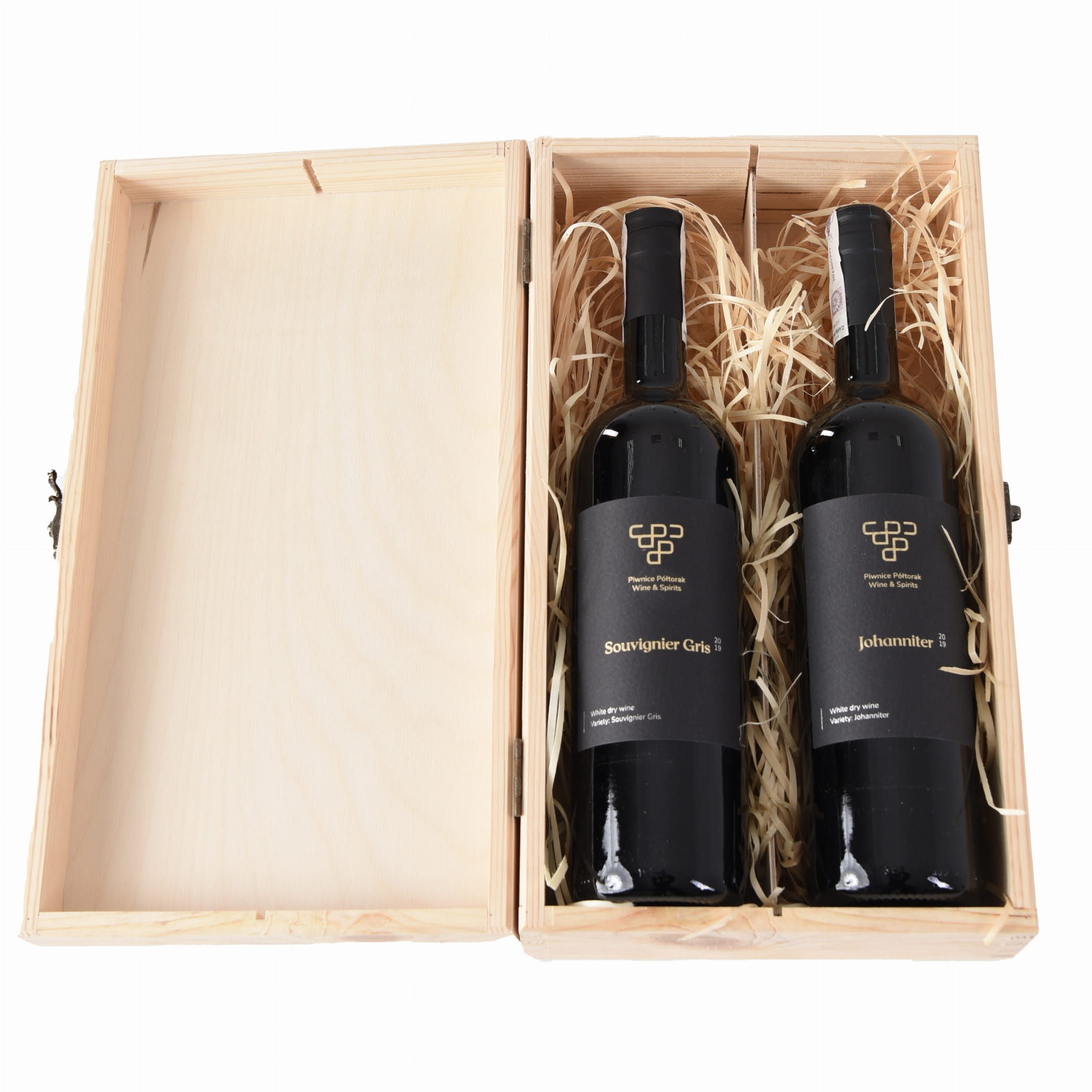 Skrzynka drewniana jasna na zestaw prezentowy - 2 butelki